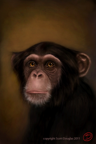 After doing a number of portraits of people like this I felt compelled to do something a little different. So here we have the first of a set of animals, in this case a chimpanzee. The challenge with this painting was to imbue it with a sense of presence, but not a human one.