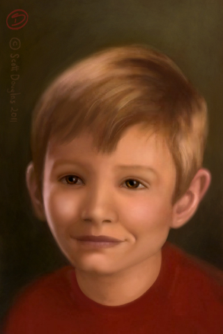 He wore that red shirt specially for this portrait – it’s actually a Smurfs shirt. I didn’t put that in, though, as I thought it would be distracting. I have three other portraits in progress for this series (including one of my cat) which I will be posting soon.