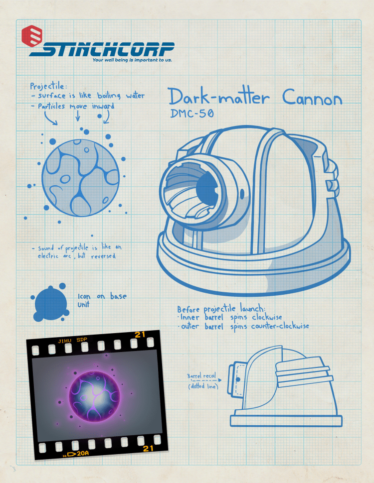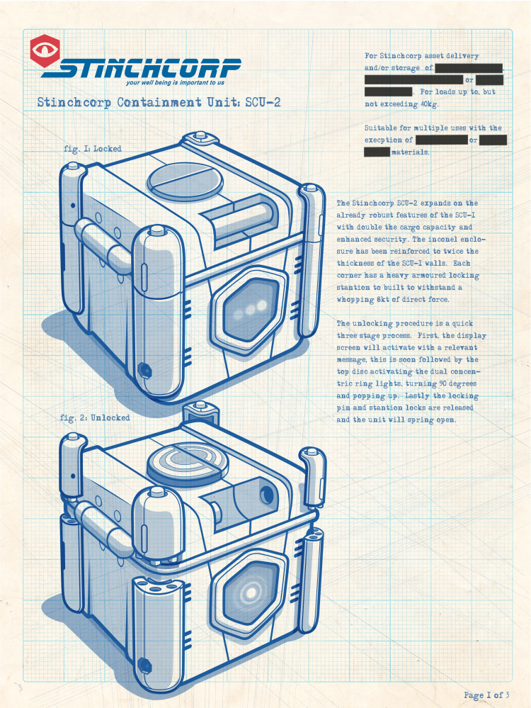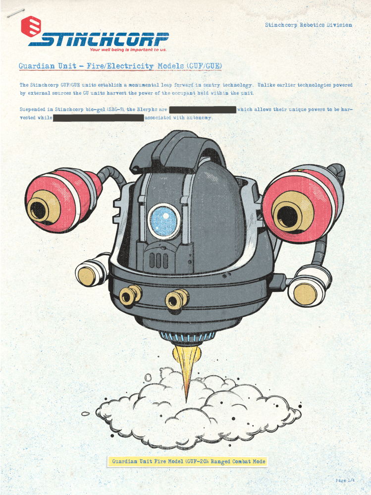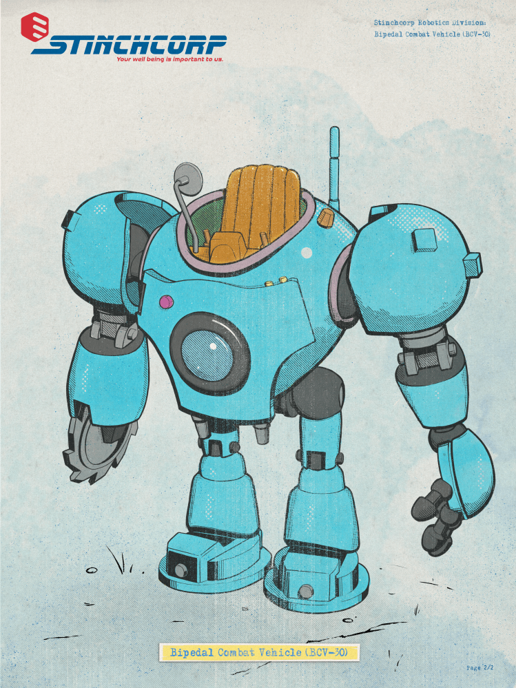 Mech suits, weapons, loot boxes, tools, communication devices & teleporters… These are a few samples of the design work I did on Turbo Shot. I created these in the hand of Dr. Stinchcomb, the villain of the title.